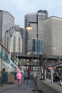 We took the kids to Elliot Bay on Sunday. I somehow thought that Sunday was Chinese New Year and wanted to get a special occasion food from China town. There weren't much going on there and it's because it wasn't the new year... It's in February according to Amy!